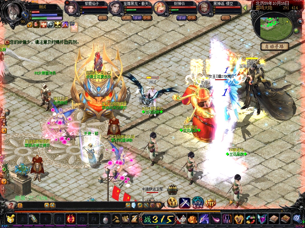 兰花主题副本采用独特的触发机制,玩家需完成特定条件才能进入: - 财神副本:在迷宫中击杀188只怪物后触发,财神爷将刷新在雷鸣门口上方区域,掉落积分卡、25星礼包和阳光礼包。